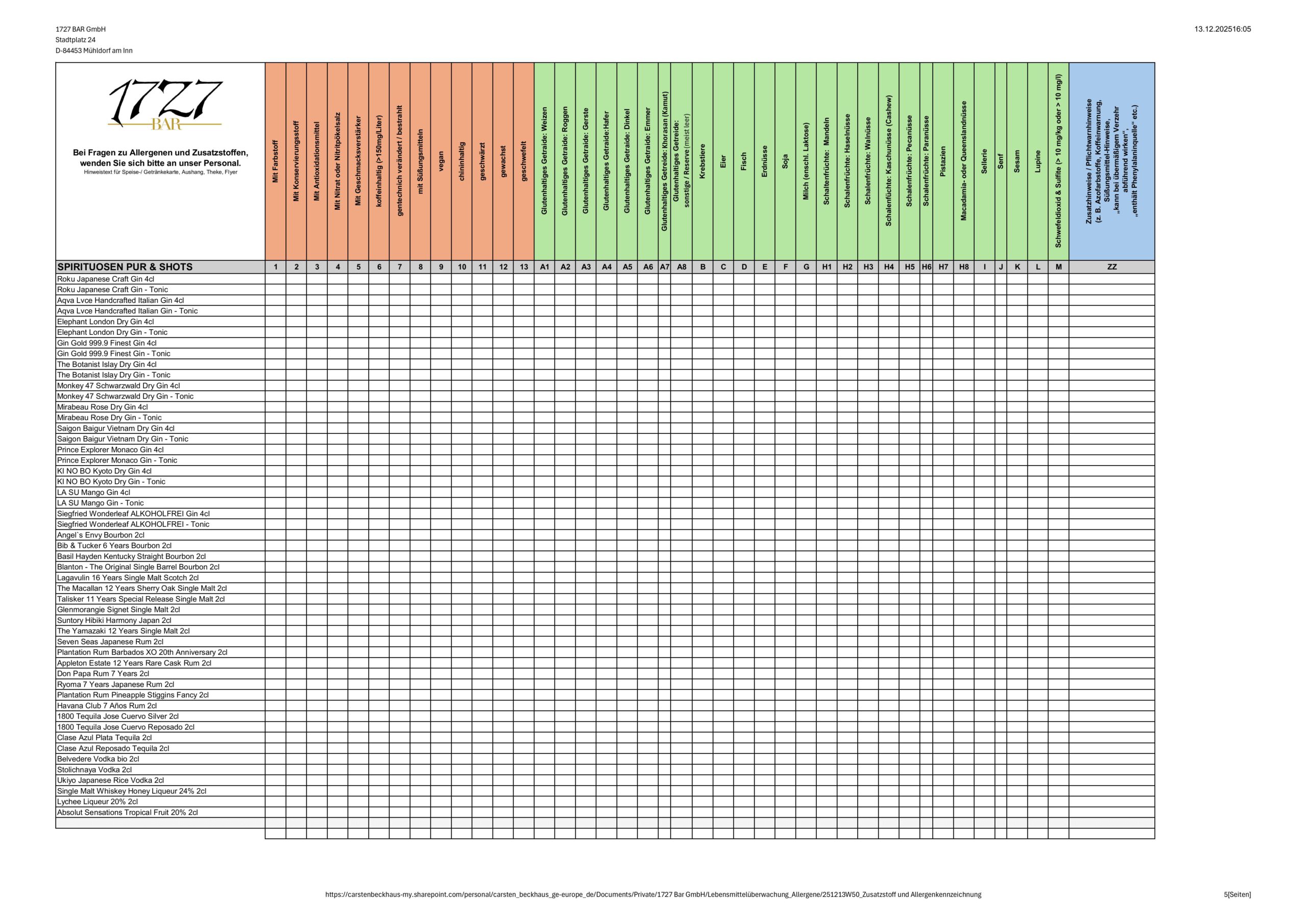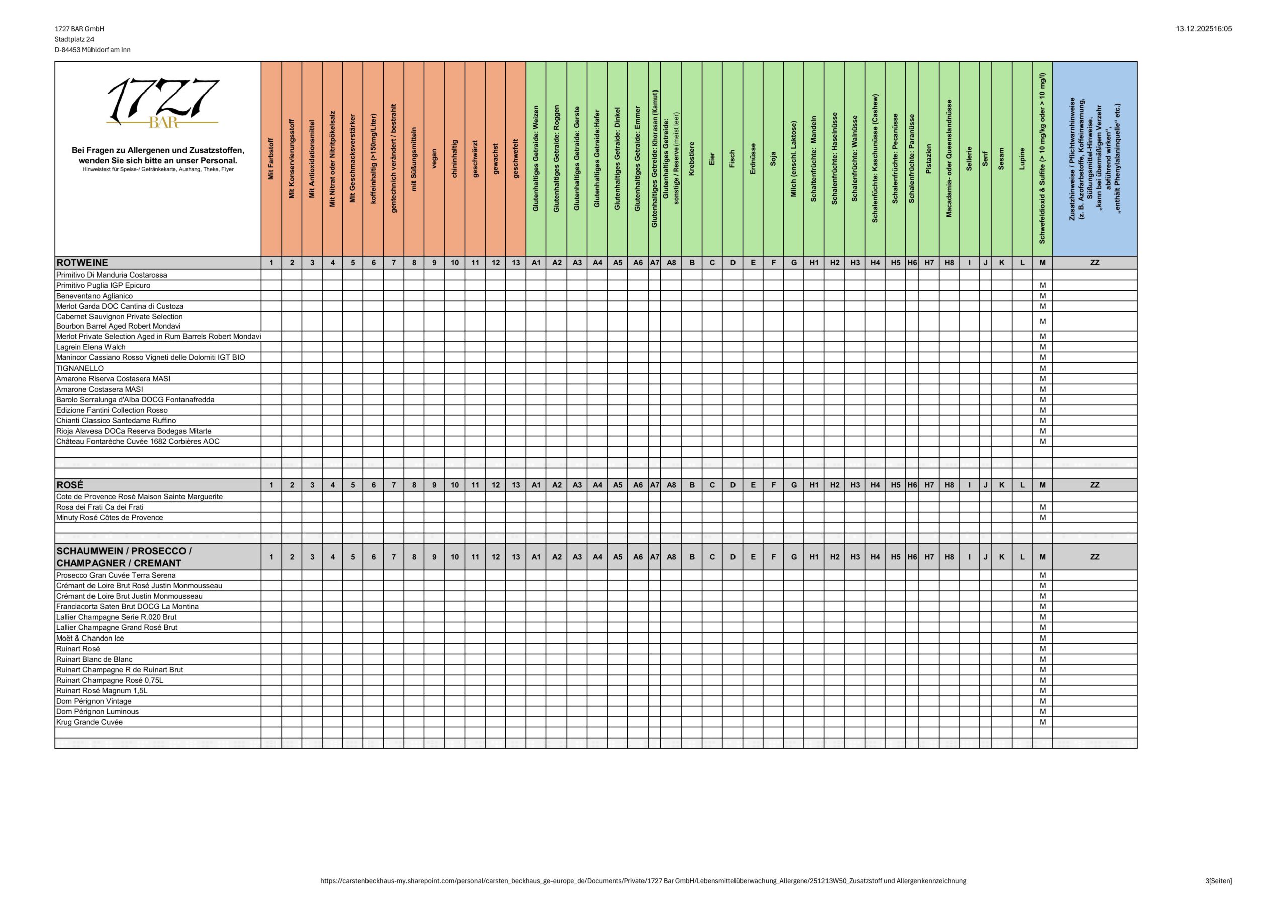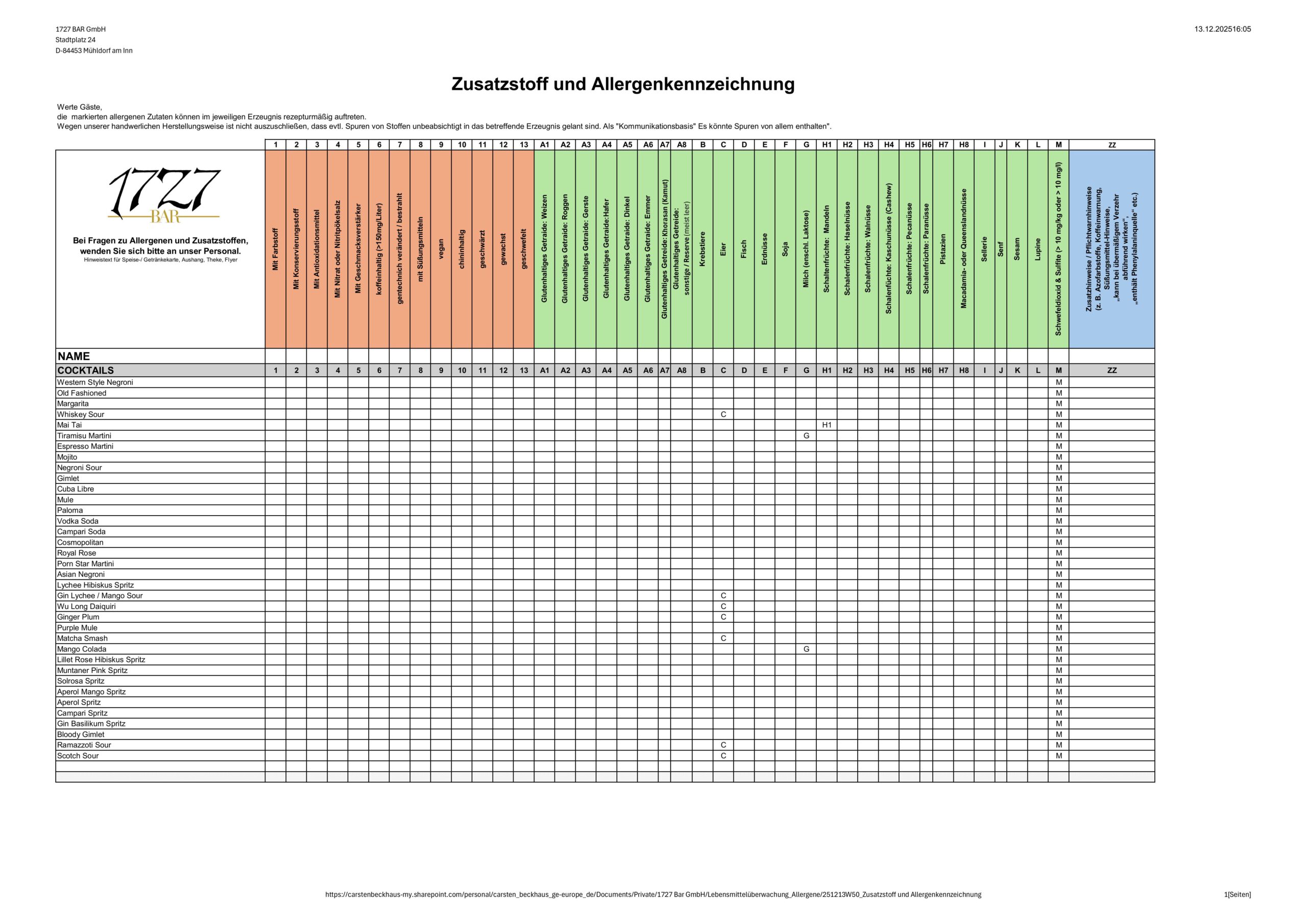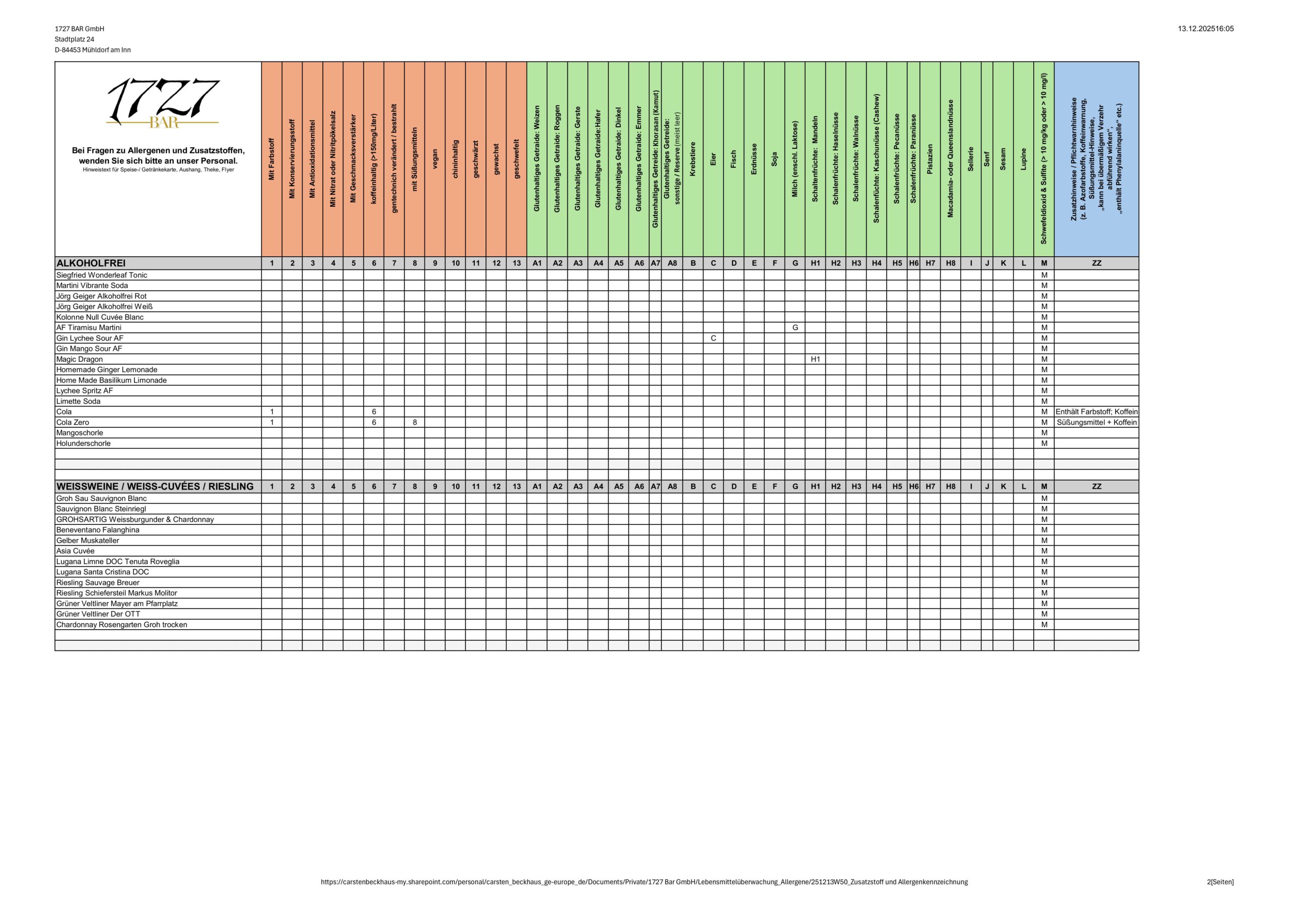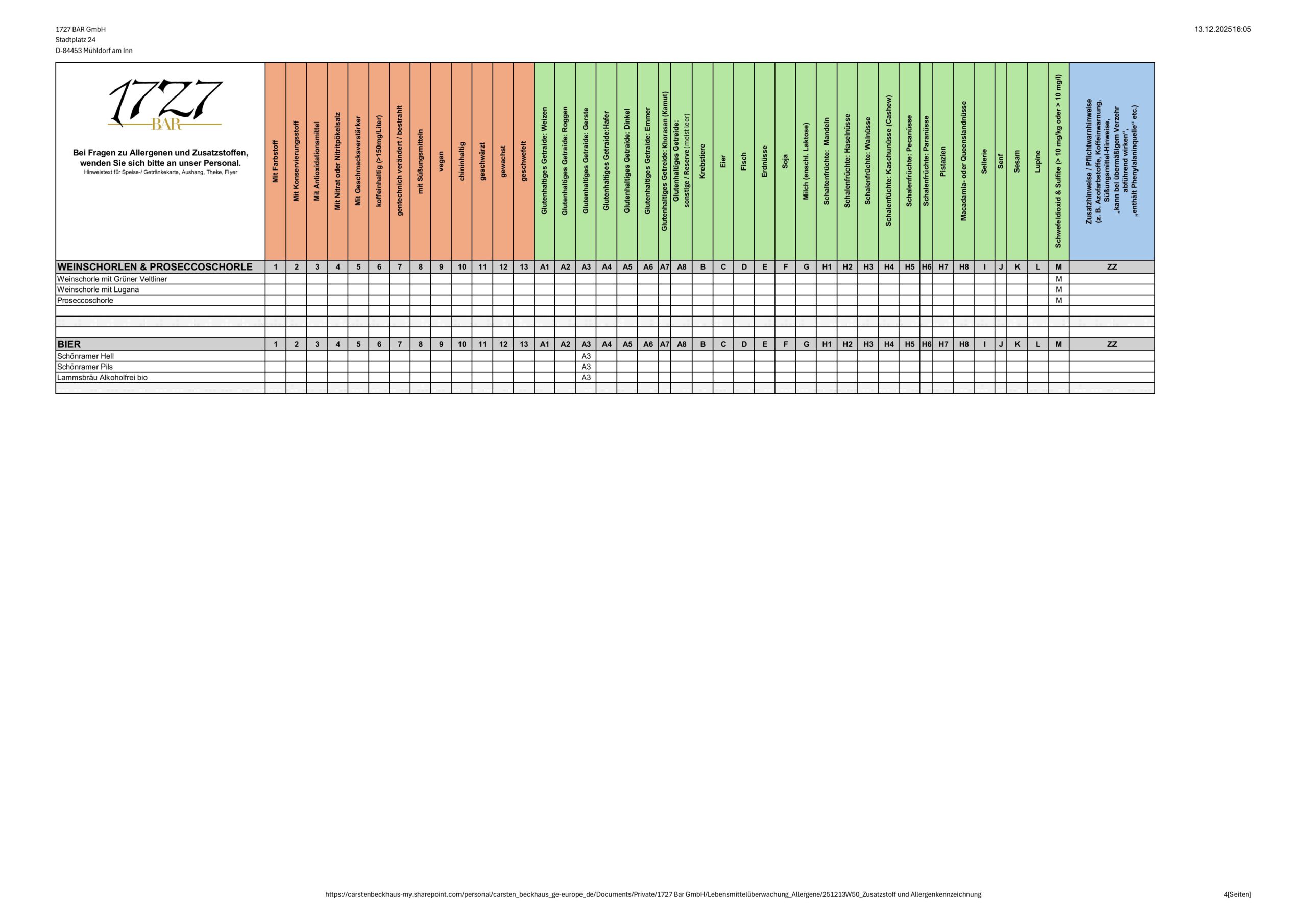 Zusatzstoff- und Allergenübersicht